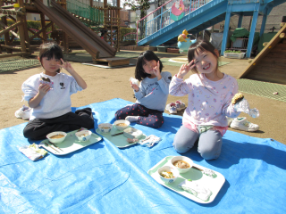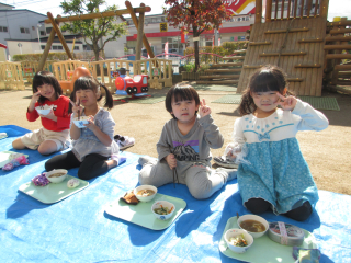 お昼は米沢牛の黄木さんから頂いた牛肉がたっぷり入った芋煮です。今日は天気も良かったので園庭で芋煮会‼子どもたちから「美味しい」の声がいつもよりたくさん聞こえてきました!(^^)!