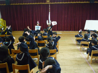 幼児組、11月生まれのお友だちは3歳児1名、4歳児1名、5歳児2名の計4名のお友だちでした。
