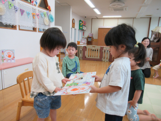 ゆり組は、にっこり笑顔が輝くお友だち☆お友だちからカードをもらえると嬉しそうに微笑んでいました(*^▽^*)