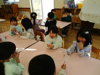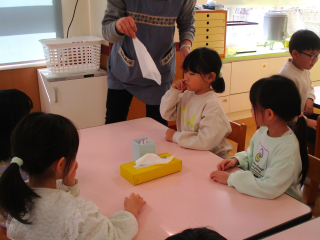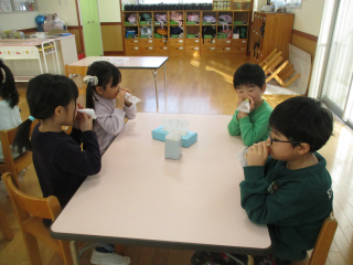 鼻かみ道具を使い、皆で練習をしました