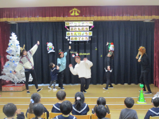 今回の出し物は先生たちによるダンスの披露!!「あわてんぼうのサンタクロース」を踊りました♪