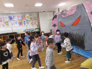 各クラスの子どもたちは、鬼さんとのご対面に備えて決起集会を行っていました!