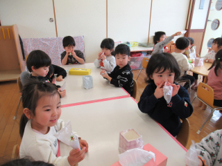 担任と共に声をかけ、上手に鼻をかむことが出来るよう…見守っていきたいと思います