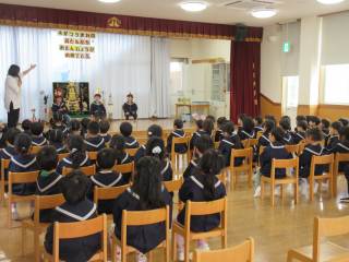 4月の誕生会がありました。4歳児2名、3歳児1名のお友だちが前に出て素敵な姿を見せてくれました!