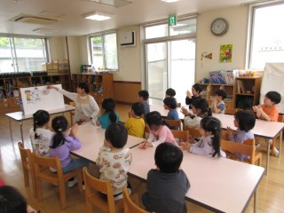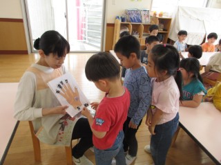 パネルシアターを用い、手洗いの方法を確認しました