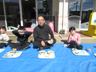 お昼は米沢牛の黄木さんから頂いた牛肉がたっぷり入った芋煮です。今日は天気も良かったので園庭で芋煮会‼子どもたちから「美味しい」の声がいつもよりたくさん聞こえてきました!(^^)!