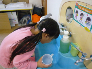 食事・歯みがきの後は「ブクブクうがい」…外遊びや帰宅時は、「ブクブクうがい」1回のあと「ガラガラうがい」が習慣となるように声をかけ見守っていきたいと思います