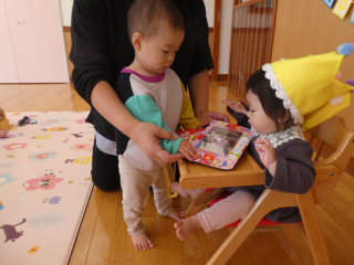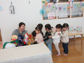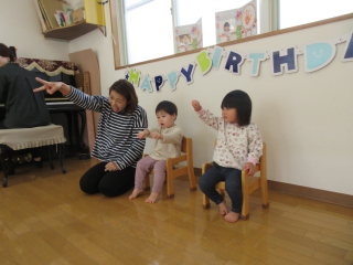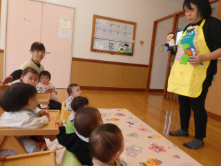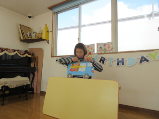 2歳になったよと上手に教えてくれました!出し物の「お弁当バス」のパネルシアターも大喜びで、盛り上がりました(*^▽^*)